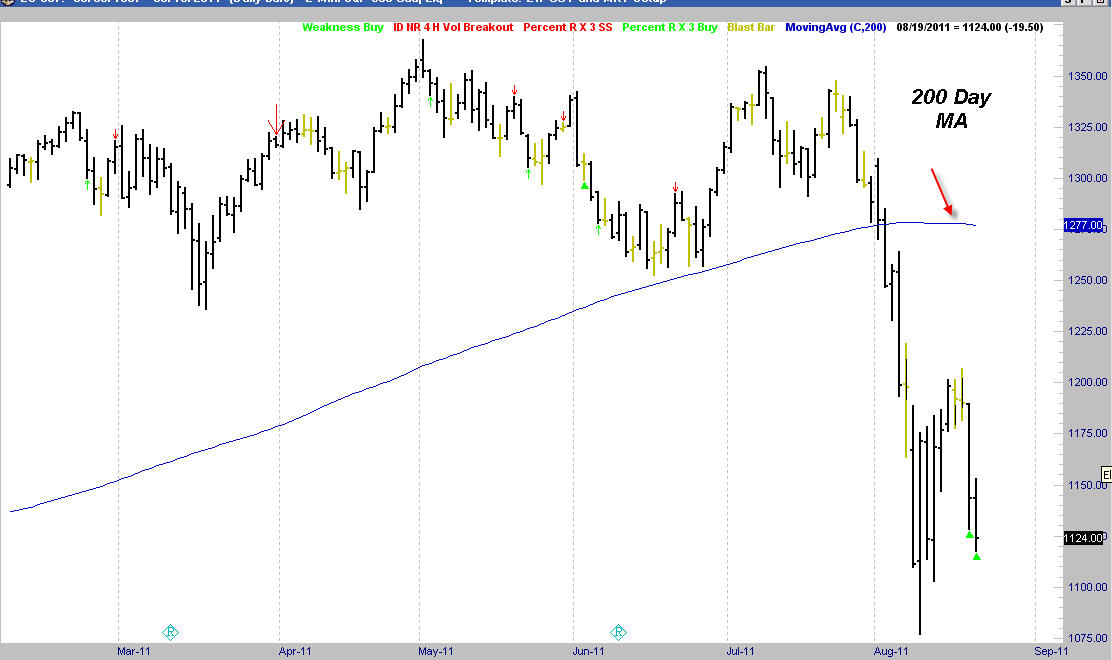 As for stocks, I still am of the same posture that we bounce or go sideways into early September, and then down again. I may be wrong, but that is what I am sticking to until proven wrong. If we just crash right into September, then maybe that will be the low all the people who "look at things differently than most" are looking for. We certainly have alot going on in the world right now and it seems as though things are at a tipping point, but remember, it is tough to trade when emotion is driving the decisions. You have to set all that crap aside and look at the charts. As for the Gold market, no matter how I view that none of the things I use has been anywhere near accurate in that market, it is breaking all the rules other than the seasonal pattern. Since that has been decent and calls for higher prices now, we might as well go with that for now.