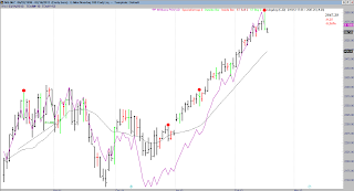 As far as other markets go, I have my MFG ( Mission From God ) on B of A, so it will be redundant. I will always be looking for sells and will take none of the buy signals there since that defeats the purpose of the mission. Also, even though I don't have sells for the indexes yet, some of the underlying things I have mentioned over the last week that bother me, are telling me to get ready for a sell signal here. I have been bullish for a long time now ( several months ), and I think time is running out here. The mystery chart has said a sell should be right about here, so lets see what happens. For this week I Just don't see any good long setups at the moment.